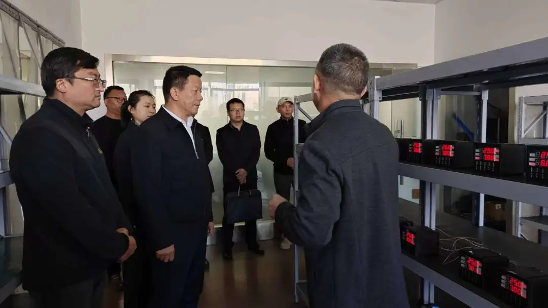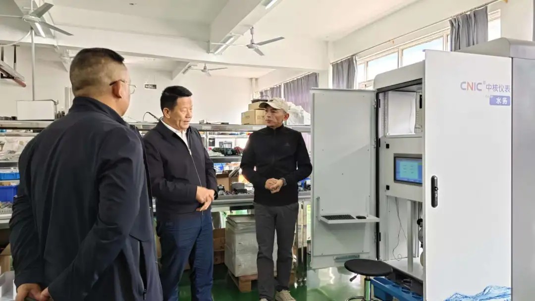 各位领导在中核仪表副总经理刘国赤的陪同下,参观了生产区、办公区及产品展示区,详细了解中核仪表在工业及水务领域的业务布局,沉浸式感受过程控制、水质监测仪表从来料加工、组装测试一直到包装出货的全流程运营管理。
